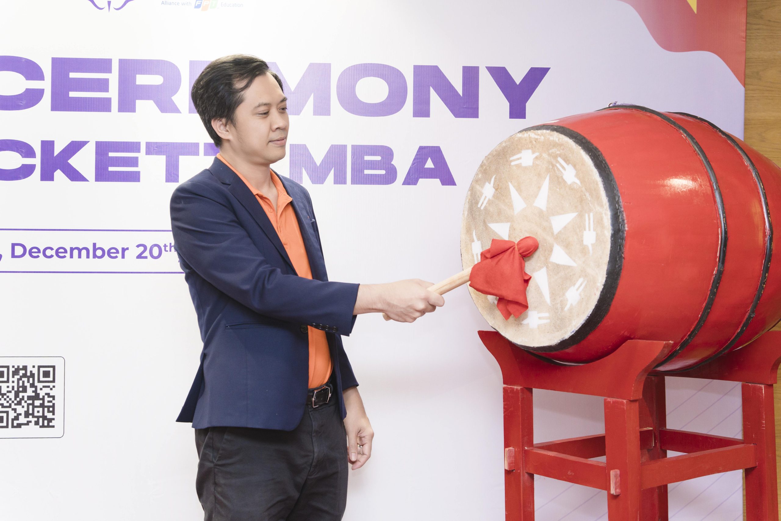 Mở đầu buổi lễ, TS. Đoàn Xuân Huy Minh – Giám đốc Cơ sở đào tạo Viện Quản trị & Công nghệ FSB TP.HCM đã gửi lời chào mừng và động viên tới các học viên mới. Ngay sau đó, nghi thức đánh trống khai giảng được thực hiện trang trọng, chính thức mở ra chặng đường học tập và phát triển cá nhân – chuyên môn của các học viên Leeds Beckett MBA.