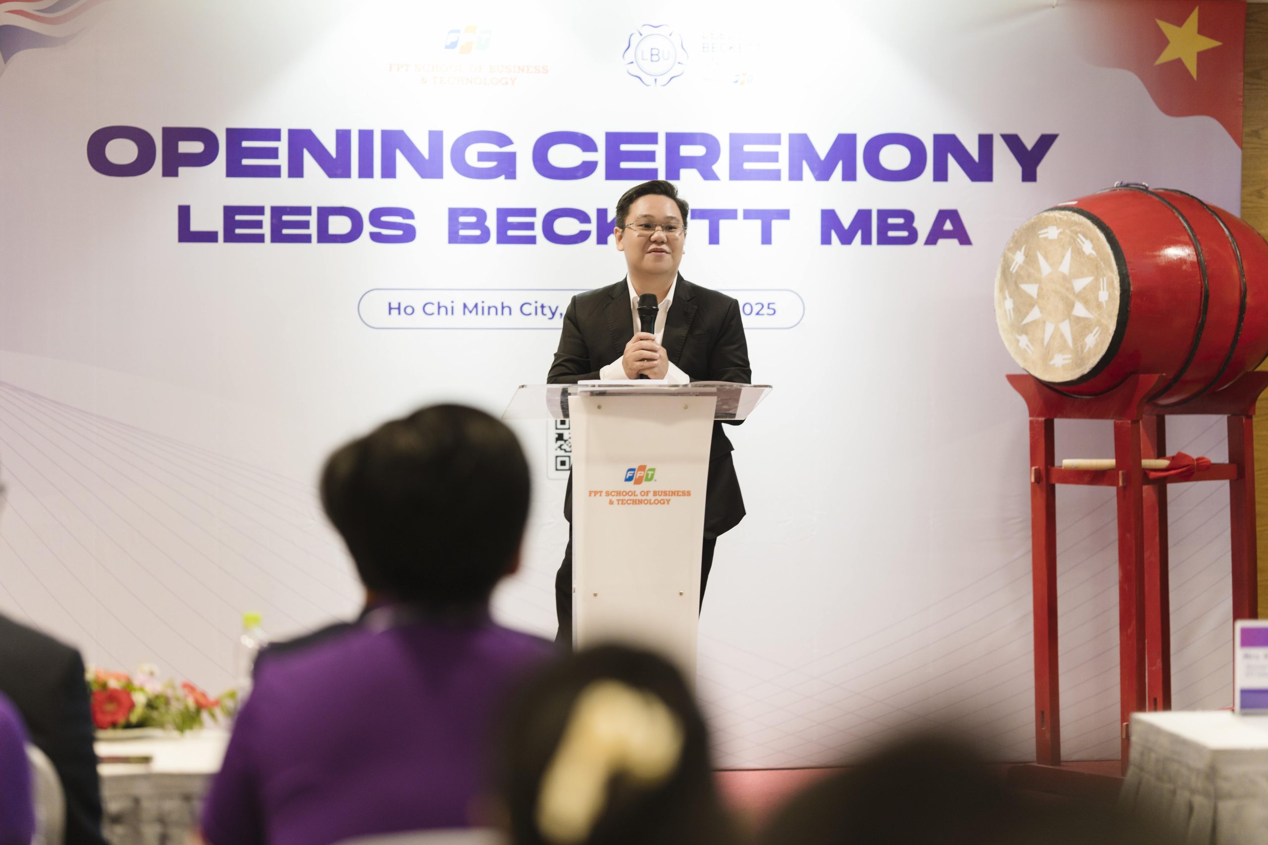 Tham gia chương trình theo hình thức trực tuyến, ông Liam Howarth – Giám đốc khu vực Đông & Đông Nam Á (bao gồm Trung Quốc và Pakistan), Trường Đại học Leeds Beckett (UK) đã gửi lời chào mừng tới các học viên tại Việt Nam. Đại diện Leeds Beckett University khẳng định cam kết duy trì chuẩn đào tạo, chất lượng học thuật và giá trị toàn cầu của chương trình MBA, dù được triển khai tại bất kỳ quốc gia nào.