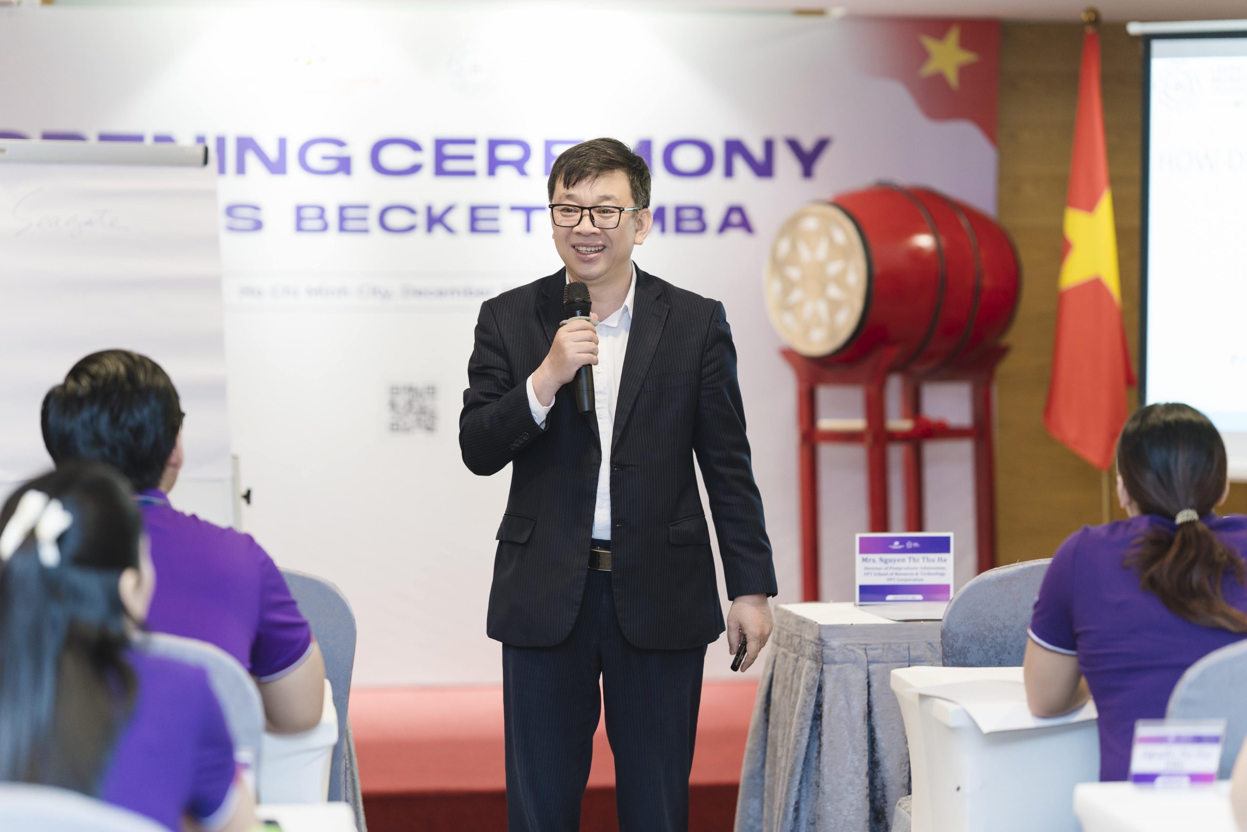 Trước hết, TS. Nguyễn Thanh Tùng đã có phần chia sẻ định hướng, giúp học viên hình dung rõ hơn về tinh thần học MBA theo chuẩn quốc tế: học có hệ thống, tư duy phản biện, và đặc biệt là khả năng liên hệ vấn đề quản trị với bối cảnh doanh nghiệp thực tế. Những gợi mở này đặt nền để học viên bước vào hành trình 18 tháng với tâm thế đúng: không học để “biết thêm”, mà học để ra quyết định tốt hơn và quản trị hiệu quả hơn.
